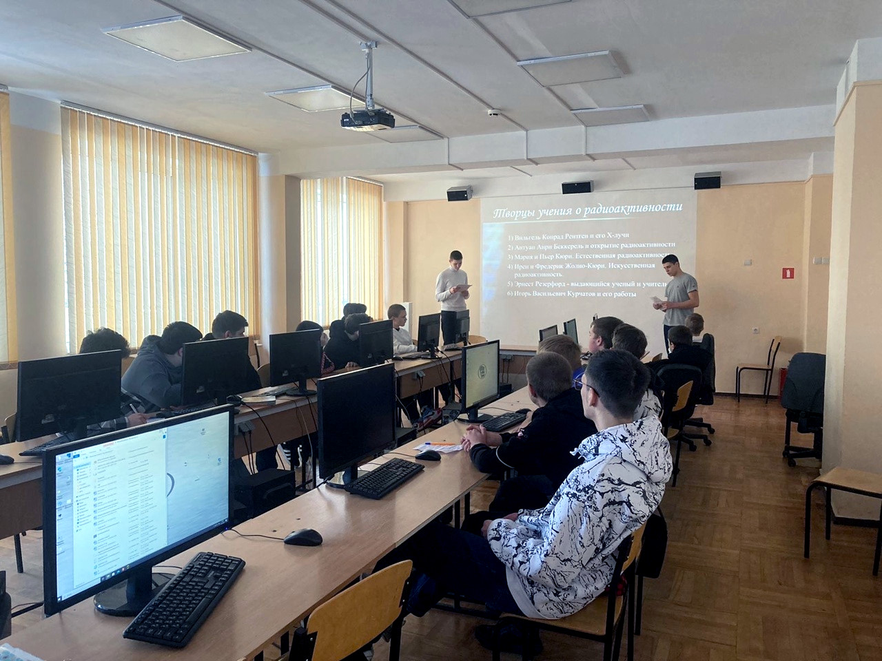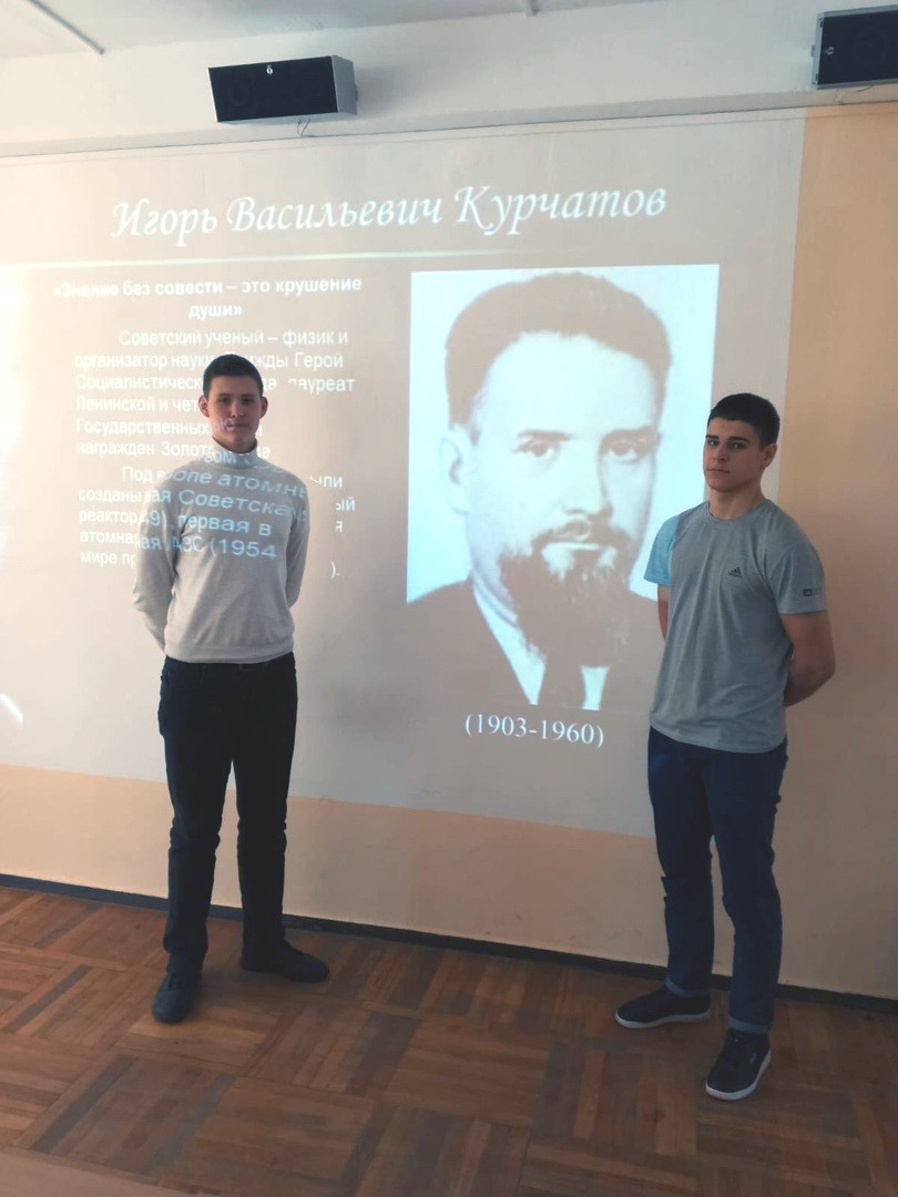 В ГБПОУ РО «РКМиА» состоялся конкурс презентаций " Курчатов и Александров -великие учёные России, созидатели и творцы". Студенты Мигуша Д., Шахназаров К. И Тадтаев Д. с наставником Явленской М. В. подготовили интересные презентации про учёных. Курчатов — советский физик, «отец» советской атомной бомбы. Курчатов- трижды Герой Социалистического Труда. Академик АН СССР и АН Узбекской ССР, доктор физико-математических наук, профессор.
