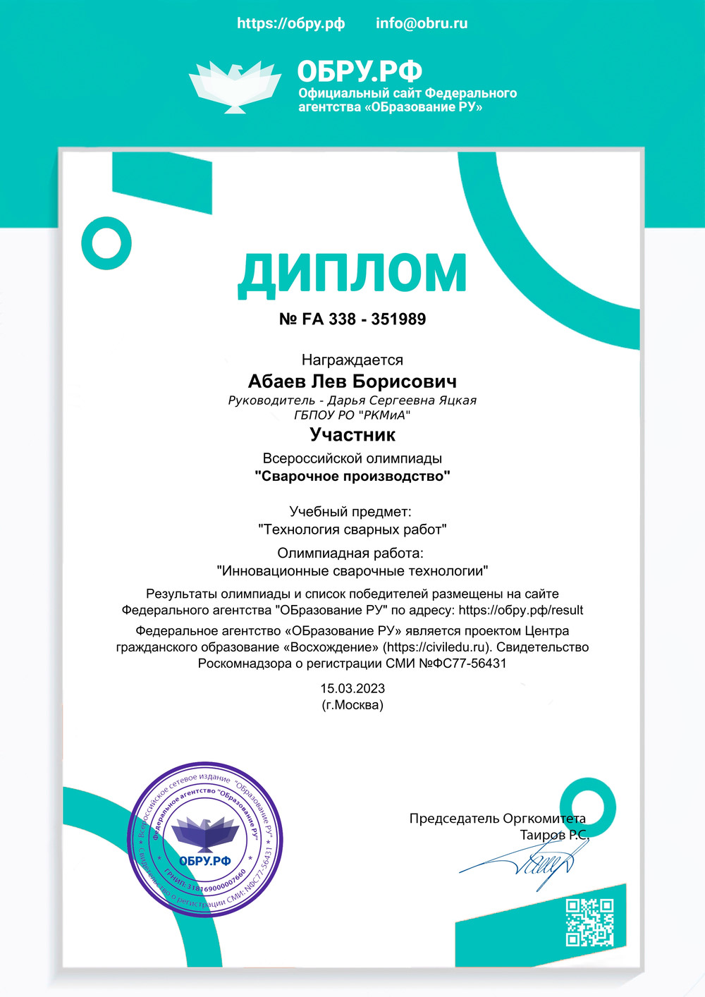 Специальности 22.02.06 Сварочное производство студентов 3 курса ГБПОУ РО «РКМиА» по