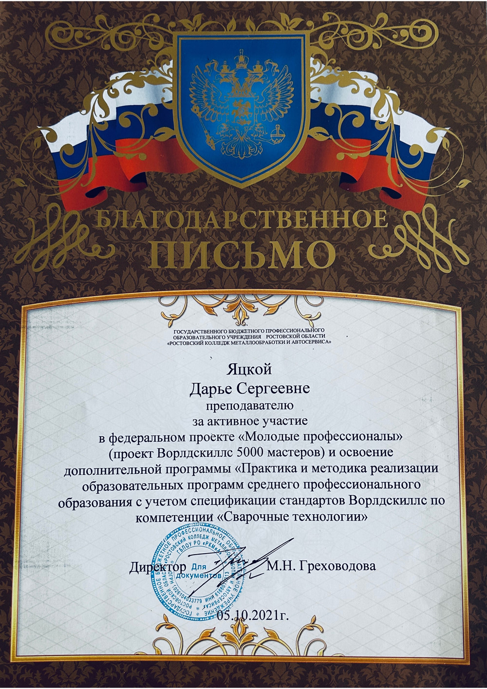 Специальности 22.02.06 Сварочное производство студентов 4 курса ГБПОУ РО «РКМиА» по